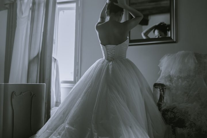 - Kleid, Schleier und ggfs. offene Haare perfekt positionieren